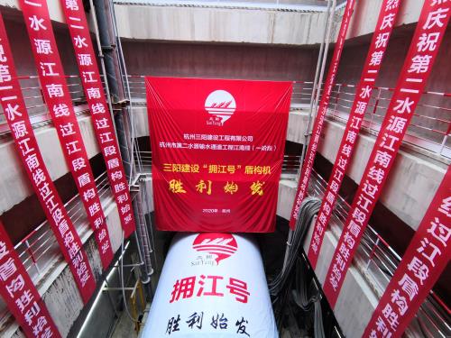 隨著始發(fā)令的下達,陪同著隆隆的轟鳴聲,過江段“擁江號”盾構(gòu)刀盤徐徐轉(zhuǎn)動,身著紅妝的盾構(gòu)機整體徐徐向前掘進,江南線項目過江段盾構(gòu)在錢塘江畔順遂始發(fā),標記著過江段正式進入?yún)^(qū)間盾構(gòu)施工階段,杭州市第二水源輸水通道工程建設再次取得重大希望,掀開了工程建設的新篇章。