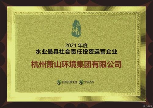 近期,蕭山情形集團再次榮獲2021年度中國水業(yè)最具社會責(zé)任投資運營企業(yè)