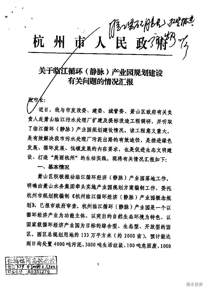 張市長(zhǎng)指揮件中對(duì)臨江循環(huán)經(jīng)濟(jì)(靜脈)工業(yè)園項(xiàng)目作了高度評(píng)價(jià),以為該項(xiàng)目意義重大,是解決我市污水處置懲罰廠污泥出路的有用途徑,是推進(jìn)綠色、循環(huán)、低碳生長(zhǎng)的內(nèi)在要求,也是增進(jìn)生態(tài)文明建設(shè)、打造“漂亮杭州”的生動(dòng)實(shí)踐。由于工業(yè)園涉及蕭山區(qū)和大江東工業(yè)集聚區(qū),權(quán)屬管理問(wèn)題重大,張市長(zhǎng)贊成高照料的意見(jiàn),催促市妄想局盡快組織計(jì)劃審查并做好后續(xù)控規(guī)體例指導(dǎo)事情,要求市城投集團(tuán)等相關(guān)部分提前介入,增強(qiáng)與工業(yè)園的周全戰(zhàn)略合作,一攬子解決杭州市污水廠污泥、垃圾、飛灰、有毒有害固廢協(xié)同處置懲罰問(wèn)題。