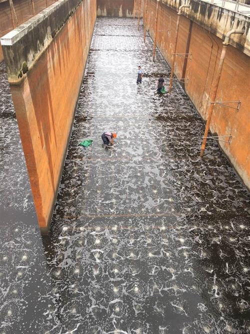 錢江廠二期反應(yīng)池因曝氣膜使用周期長、老化嚴重,且池上氣閥大都失靈,導至出宇量漫衍不勻稱,既影響了正常生產(chǎn)運行,又加大了鼓風性能耗。該廠自五月中旬起,最先放空B池,掃除池底積泥,再由生產(chǎn)廠家對氣管和曝氣膜開展磨練、加固及替換。接下來,該廠還將對A池舉行替換。