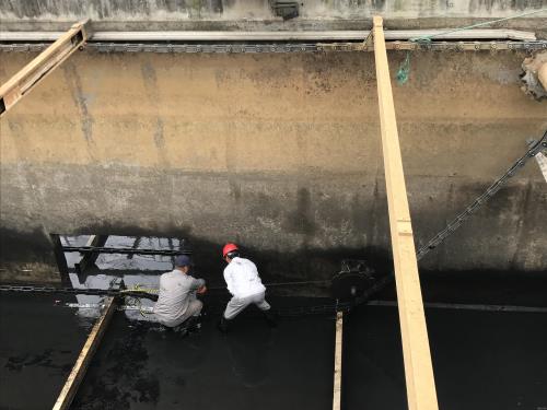 10月23日,事情職員巡查時(shí)發(fā)明二期二沉池由于底部積泥較多,鏈板式刮泥機(jī)負(fù)荷重,導(dǎo)致鏈條脫離齒輪?;拮榻擁叫攣藕?,連忙對(duì)事情舉行了安排。二沉池底部積泥整理完畢后,維修職員將鏈條放至最松,用氣體檢測(cè)儀確認(rèn)池下無有毒有害氣體,下池重新將鏈條卡進(jìn)齒輪,并對(duì)刮泥機(jī)破損刮板一并舉行了替換。