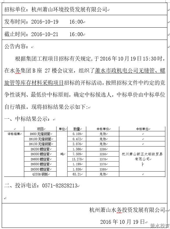 蕭水市政機(jī)電公司無縫管、螺旋管等庫存質(zhì)料采購項(xiàng)目