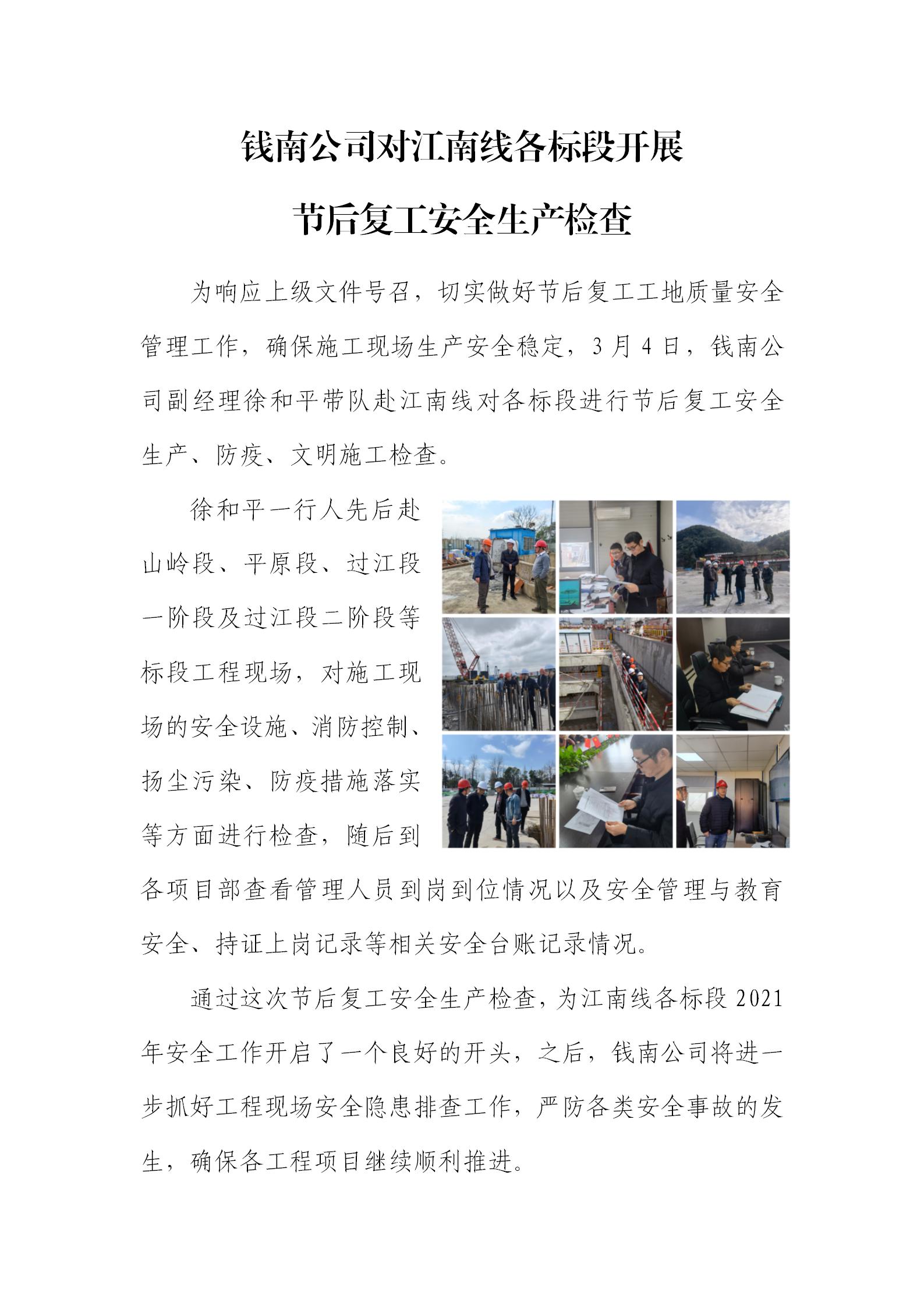 錢南公司對(duì)江南線各標(biāo)段開(kāi)展