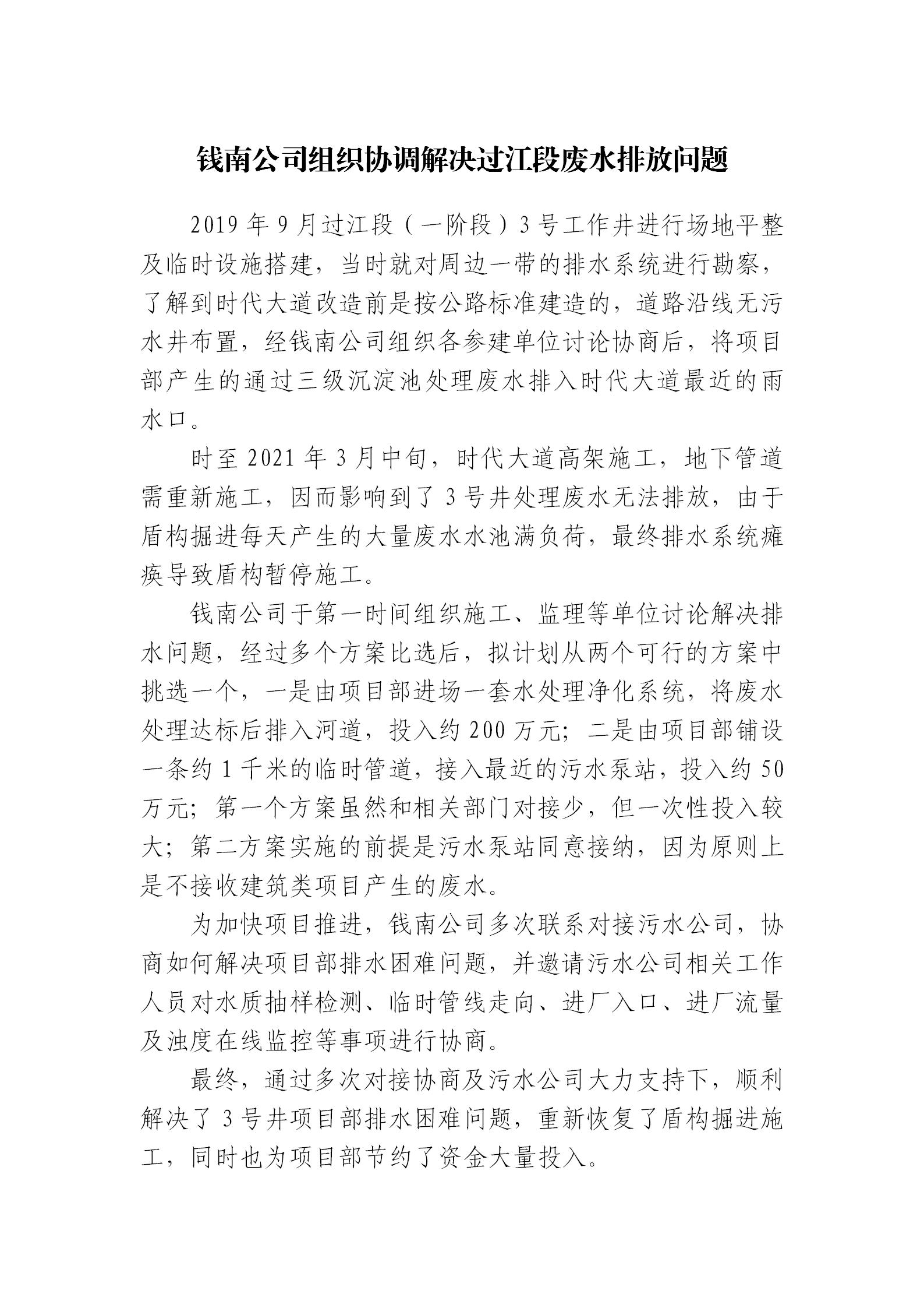 錢(qián)南公司組織協(xié)調(diào)解決過(guò)江段廢水排放問(wèn)題