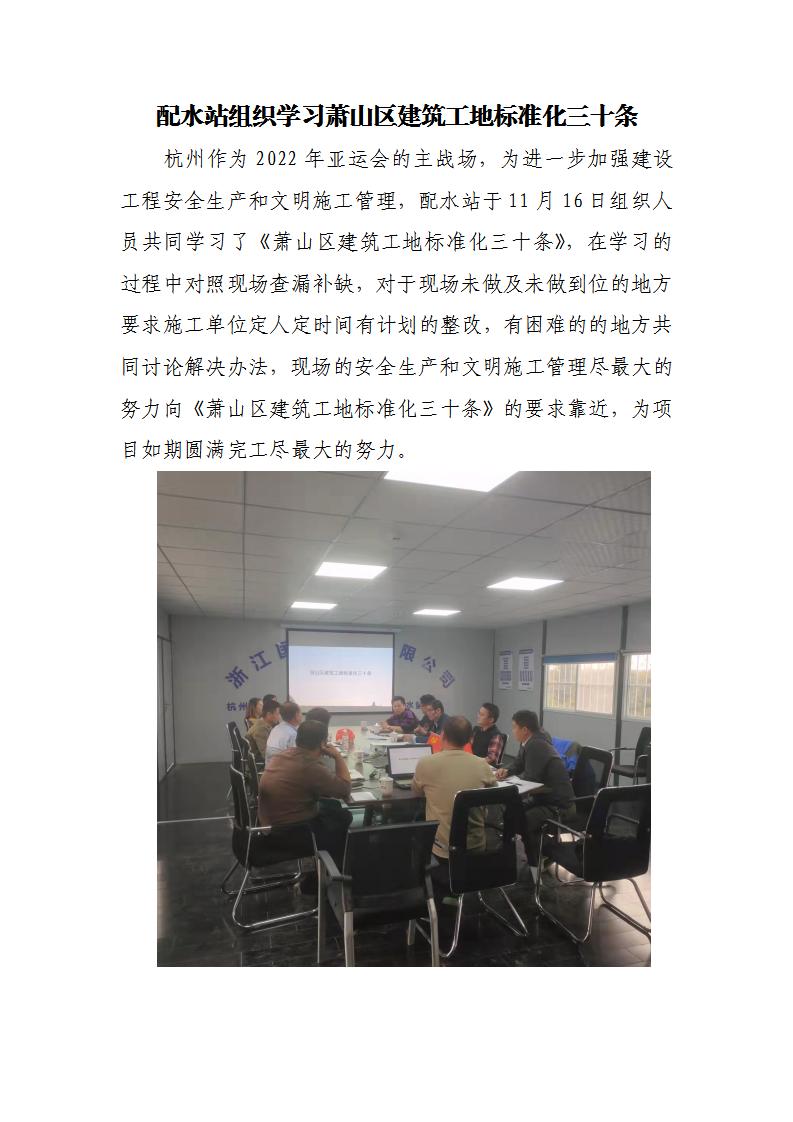 配水站組織學(xué)習(xí)蕭山區(qū)修建工地標(biāo)準(zhǔn)化三十條