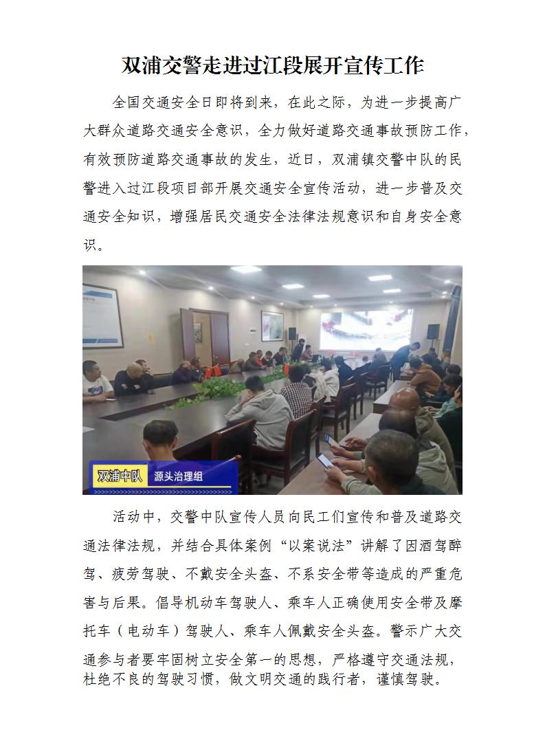 雙浦交警走進過江段睜開宣傳事情