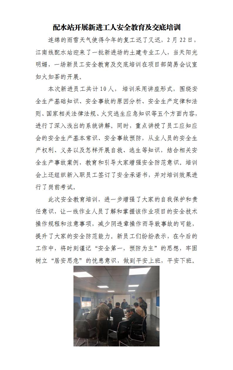 配水站開(kāi)展新進(jìn)工人清靜教育及交底培訓(xùn)