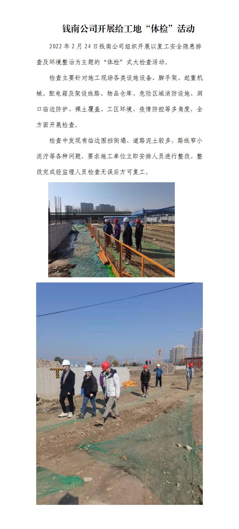 錢南公司開展給工地“體檢”運動