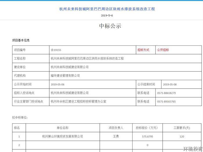 2019年5月5日上午9:30,在余杭公共資源生意中心1號開標室,杭州未來科技城阿里巴巴周邊區(qū)塊雨水排放系統(tǒng)刷新工程果真招標開標,共有65家單位加入投標。經(jīng)評標委員會評審,投資公司依附自身實力和合理報價樂成中標。