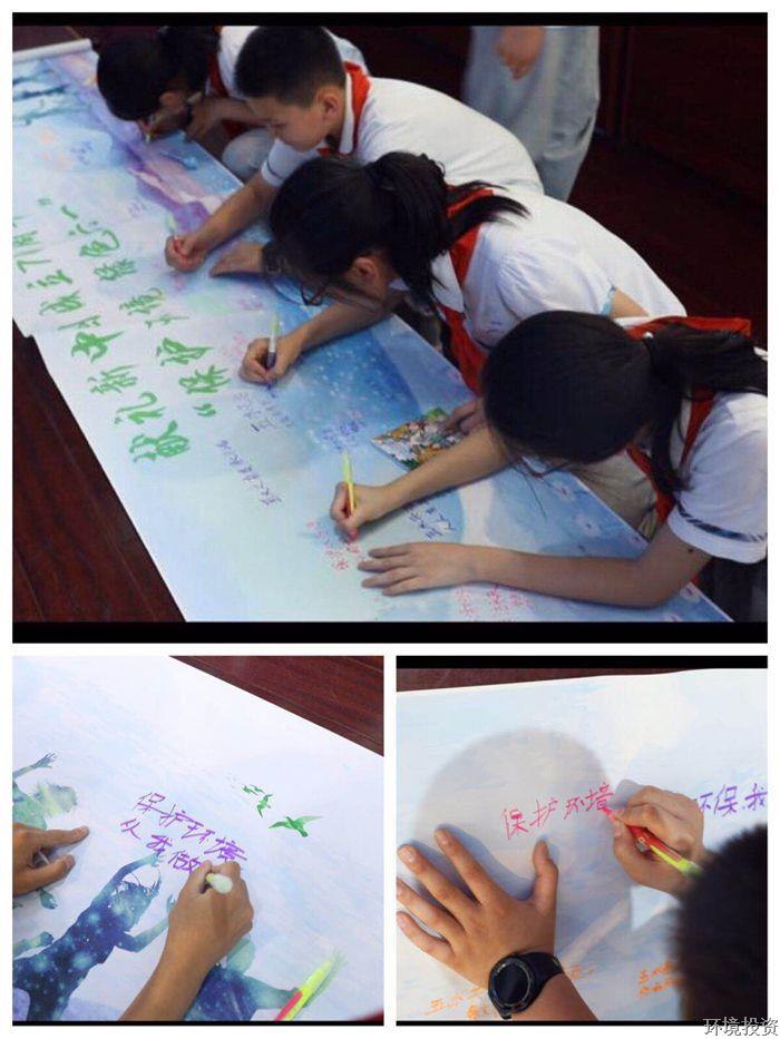 運(yùn)動(dòng)最后自愿者們約請(qǐng)各人在卷軸上舉行署名,同硯們?cè)谑鹈耐?/span>時(shí)也紛紛謄寫(xiě)了自己心田的寄語(yǔ),“我為祖國(guó)點(diǎn)贊!”“?;で樾?,善待地球!”“我環(huán)保我自滿!”等等寄語(yǔ),表達(dá)了孩子們對(duì)祖國(guó)的熱愛(ài)以及對(duì)情形?;さ奶逄?。