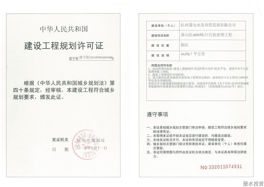 5月11日,蕭山區(qū)4000噸/日污泥處置懲罰工程項(xiàng)目正式取得杭州市妄想局揭曉的建設(shè)工程妄想允許證,至此,該項(xiàng)現(xiàn)在期審批程序畫(huà)上了圓滿(mǎn)的句號(hào),同時(shí)也為項(xiàng)目主體工程周全開(kāi)工建設(shè)滌訕了優(yōu)異的基礎(chǔ)。